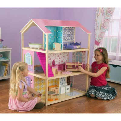 Shop for Dollhouses & Dollhouse Furnishings from DollHousesGalore.com! Featuring open sides and sliding exterior walls the KidKraft Deluxe Play Around Dollhouse is 360 degrees of fun! Large in scale and easily accessible from every angle this dollhouse will be a hit with your little girl and several of her friends. There are 10 rooms each colorful and featuring adorable artwork and colors. 31 pieces of furniture make this dollhouse a home especially pieces like the grandfather clock and the grand piano. There are two plastic molded staircases and even the floors are decorated with area rugs. Crafted of composite wood materials and packaged with detailed step-by-step assembly instructions. About KidKraftKidKraft is a leading creator manufacturer and distributor of children's furniture toy gift and room accessory items. KidKraft's headquarters in Dallas Texas serves as the nerve center for the company's design operations and distribution networks. With the company mission emphasizing quality design dependability and competitive pricing KidKraft has consistently experienced double-digit growth. It's a name parents can trust for high-quality safe innovative children's toys and furniture.** CERTAIN CONTENT THAT APPEARS THIS SITE COMES FROM AMAZON SERVICES LLC. THIS CONTENT IS PROVIDED ‘AS IS’ AND IS SUBJECT TO CHANGE OR REMOVAL AT ANY TIME.
