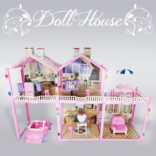 126 PCS Large Dollhouse House Pretend Condo 2 Story 3 Rooms Car Patio Fits Barbie Overview