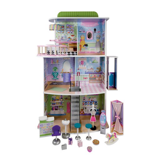 Think beyond the dollhouse! Our thrilling doll mall will inspire hours of creative play, with a boutique, restaurant, hair salon, ice cream shop, and more. Includes working elevator, stationary escalator, and 14 charmingly-detailed accessories (including an ATM!). Terrific craftsmanship; sturdy and built to last. Wooden dollhouse mall measures 26½"L x 11½"D x 43"H. Fits Barbie® and other 12" dolls. Assembly required. For ages 3 and up. A OneStepAhead Exclusive!. Three-level dollhouse includes restaurant (with table and stools) clothing store (with mirror, display form, and dressing room), hair salon (with spa chair and sink), ice cream shop (with counter), and toy store (with rocking horse, packages, and ATM machine) . Working slide elevator transports dolls from one level to another . Very high quality! Made by KidKraft® just for us of wood and MDF. . 2-hour assembly; tools included . Smallest accessory measures 1¼"L x 1¼"W x 1¼"H; largest accessory measures 11"L x 3¼"W x 3"H . Wipe clean with a damp cloth** CERTAIN CONTENT THAT APPEARS THIS SITE COMES FROM AMAZON SERVICES LLC. THIS CONTENT IS PROVIDED ‘AS IS’ AND IS SUBJECT TO CHANGE OR REMOVAL AT ANY TIME.